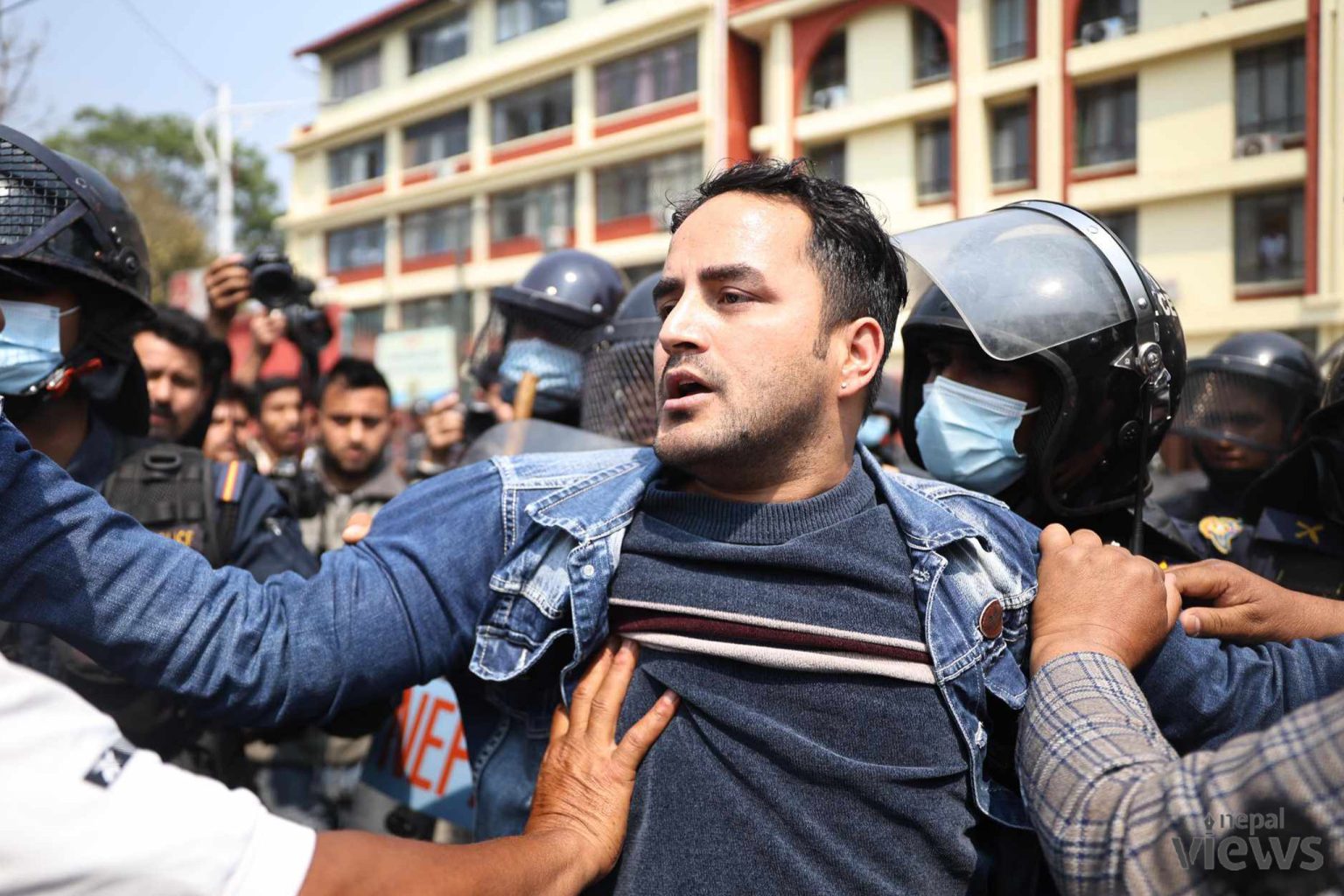 Independent Youth Nepal demonstrated in front of NEA Central Office on Wednesday.
