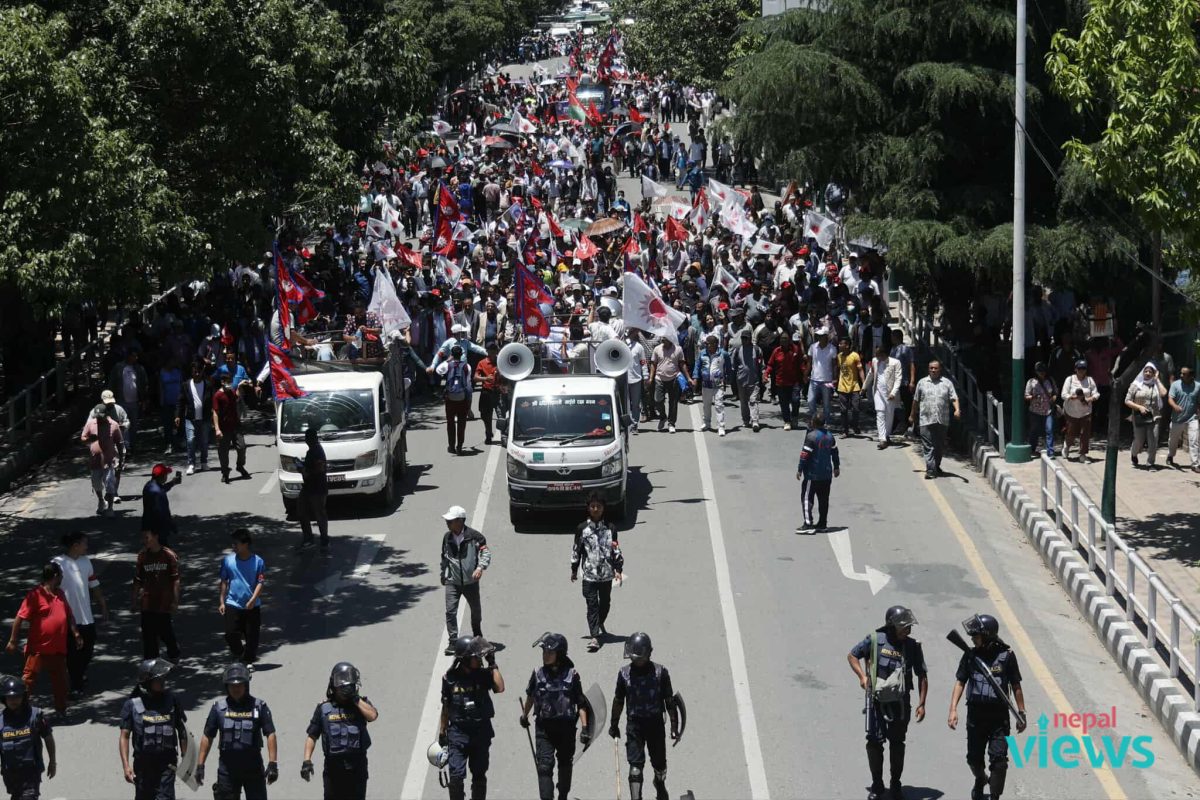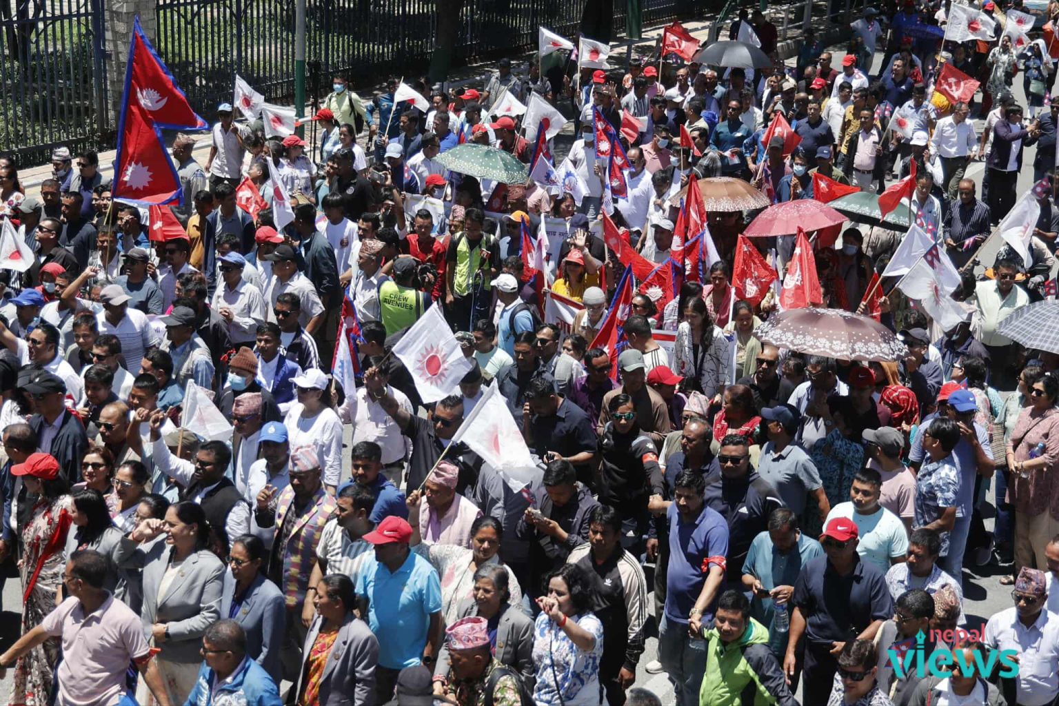 Rallies, commencing from various parts of Kathmandu, are approaching the event venue at Bhrikutimandap.