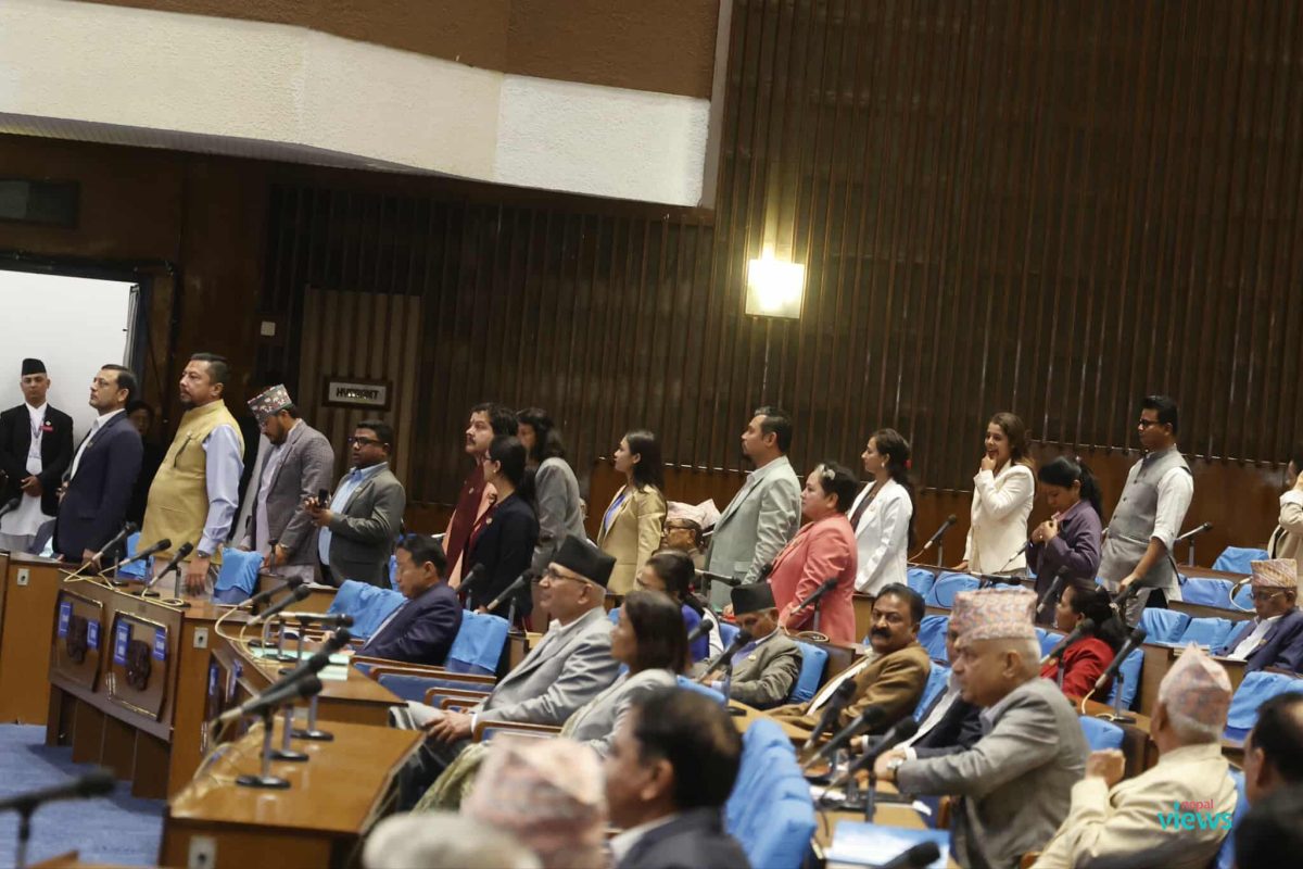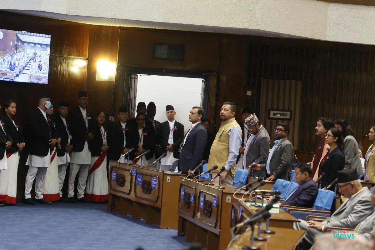 During Sunday’s meeting of the House of Representatives, RSP lawmakers surrounded the parliamentary well after Speaker Dev Raj Ghimire allowed Nepali Congress Chief Whip Shyam Kumar Ghimire to speak.