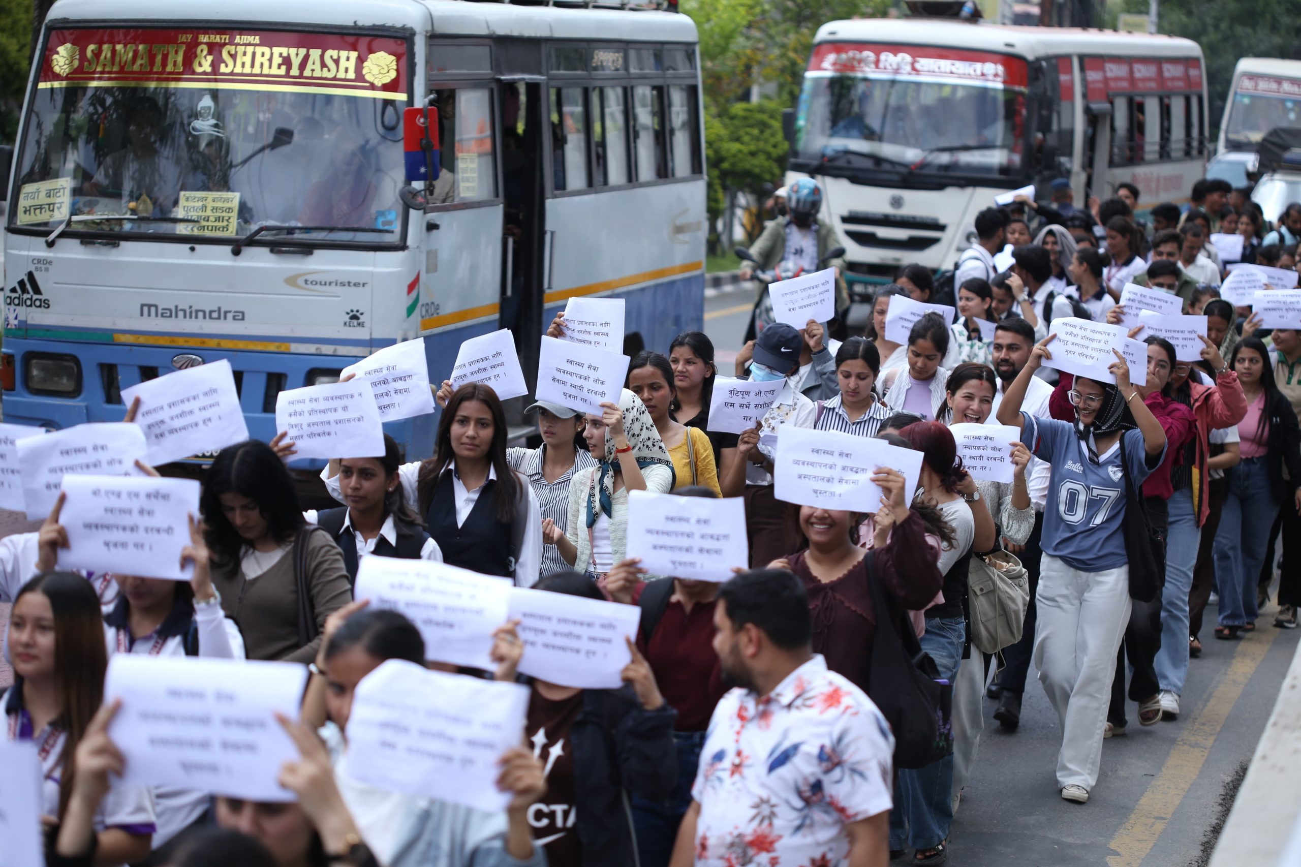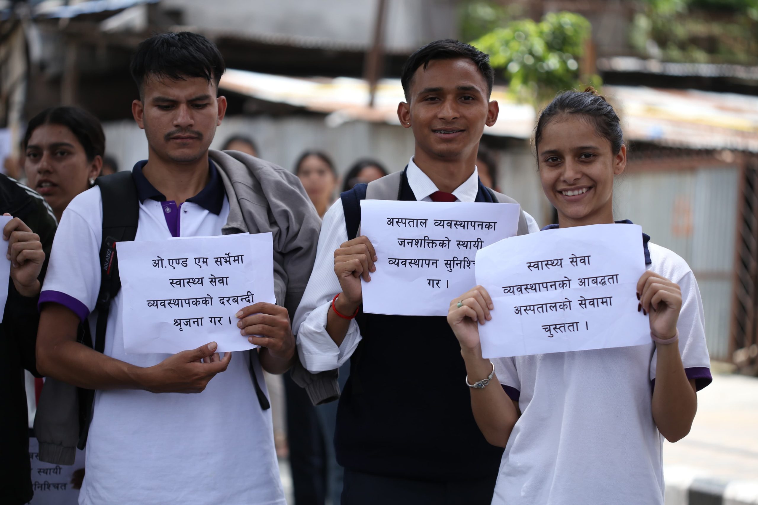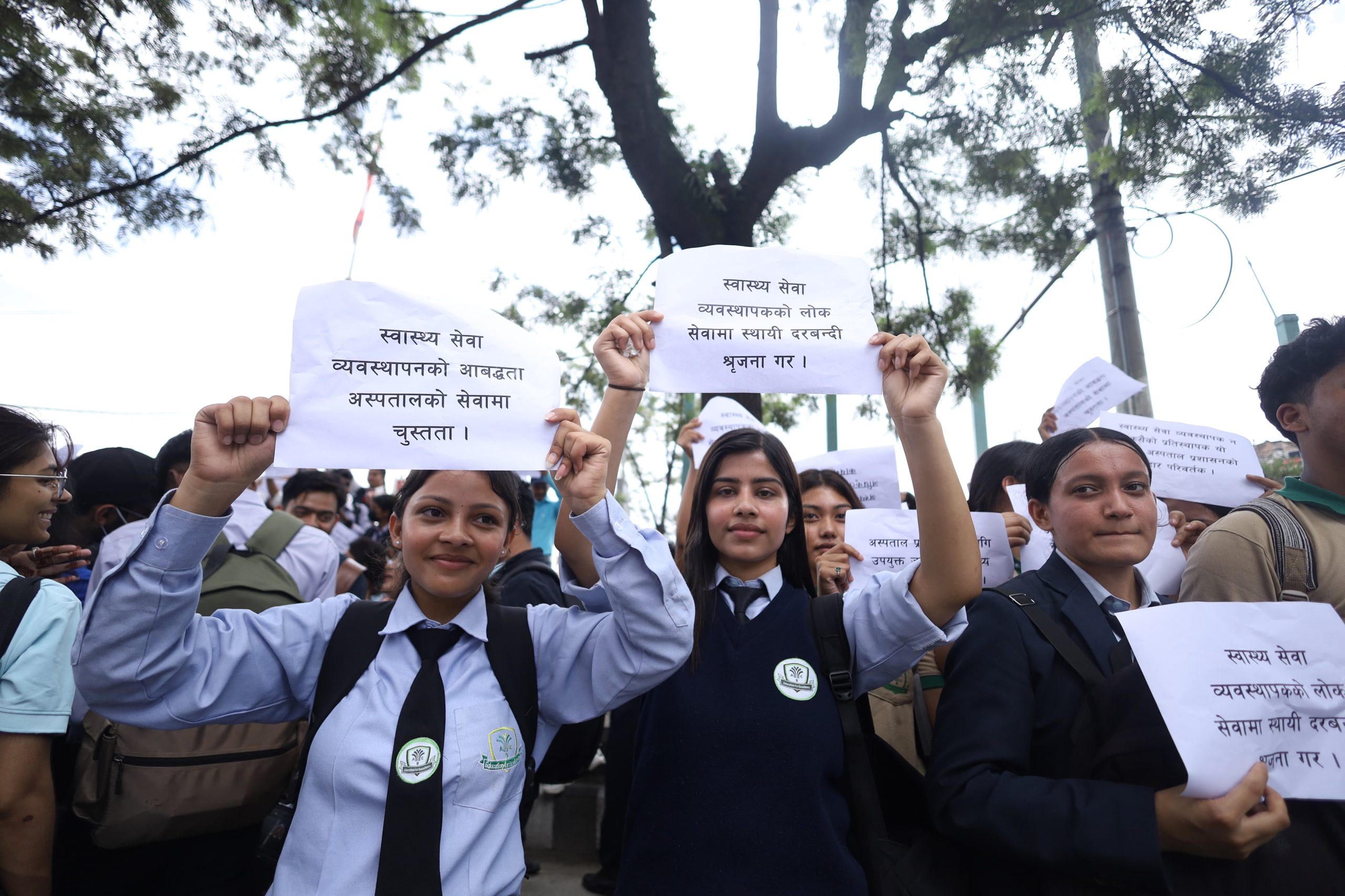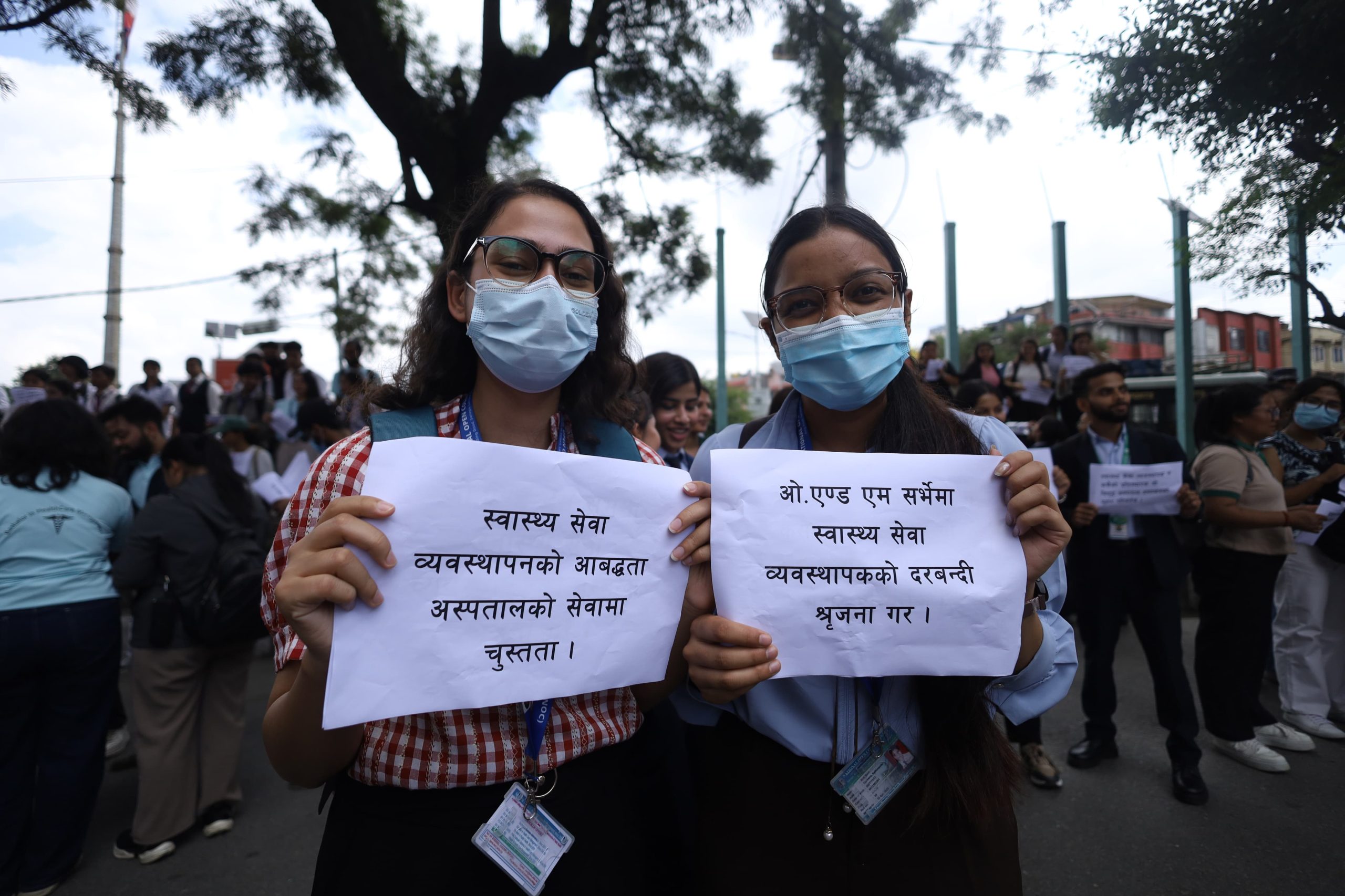 The participants carried banners and placards with slogans, marching from Bijulibazar to Maitighar. According to the association, omitting this position, which is considered essential for ensuring quality in the health service sector, contradicts the constitutional right to quality healthcare guaranteed as a fundamental right.