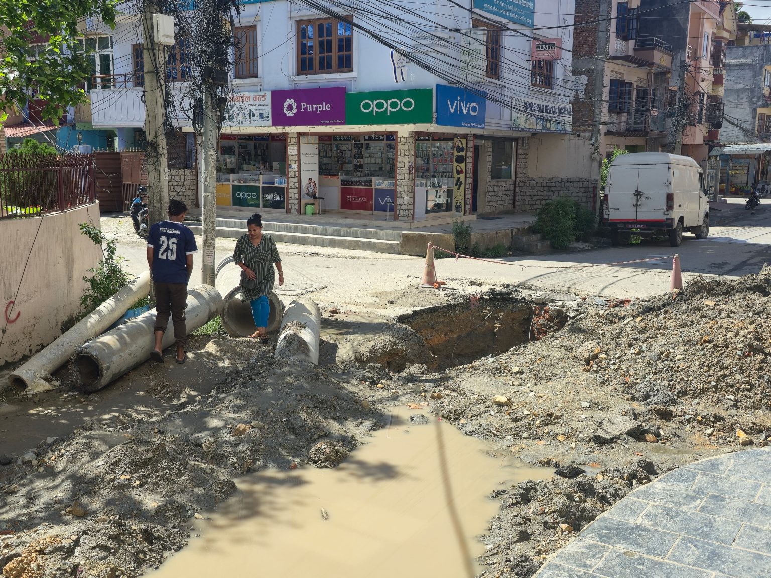 Kathmandu: The above condition is not of any rural area. It is one of the road conditions of the Kathmandu Metropolitan City (KMC).