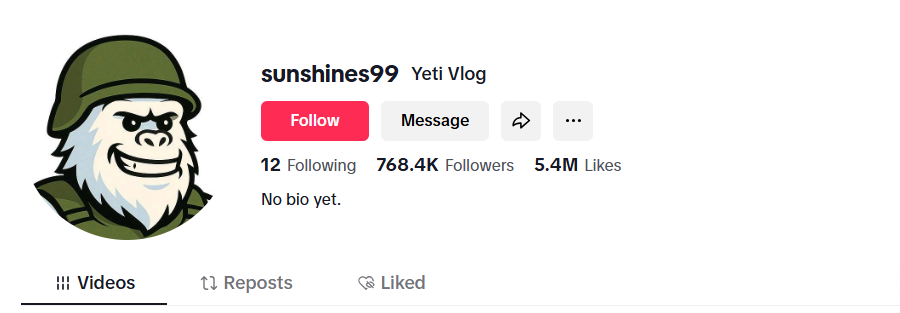 Sunshines99-The first TikTok channel to post the Yeti videos (Source: TikTok)