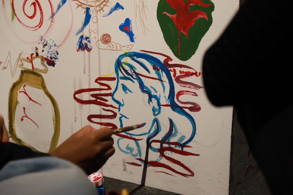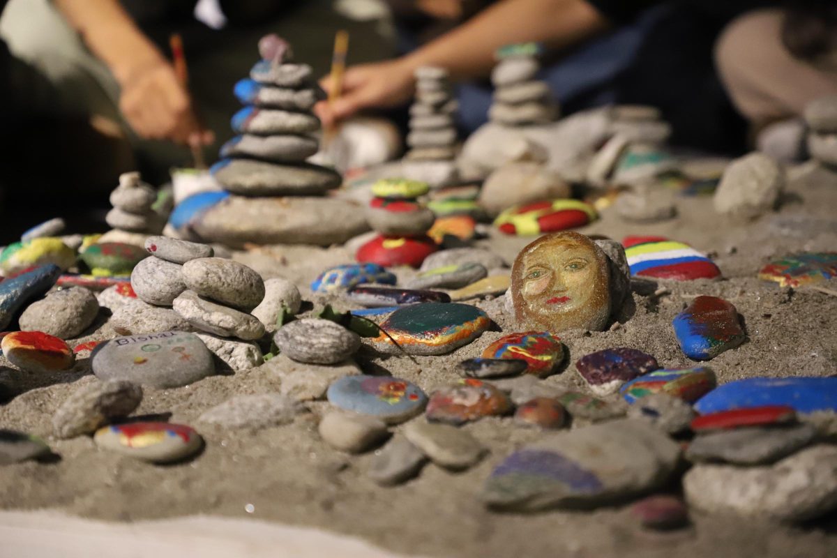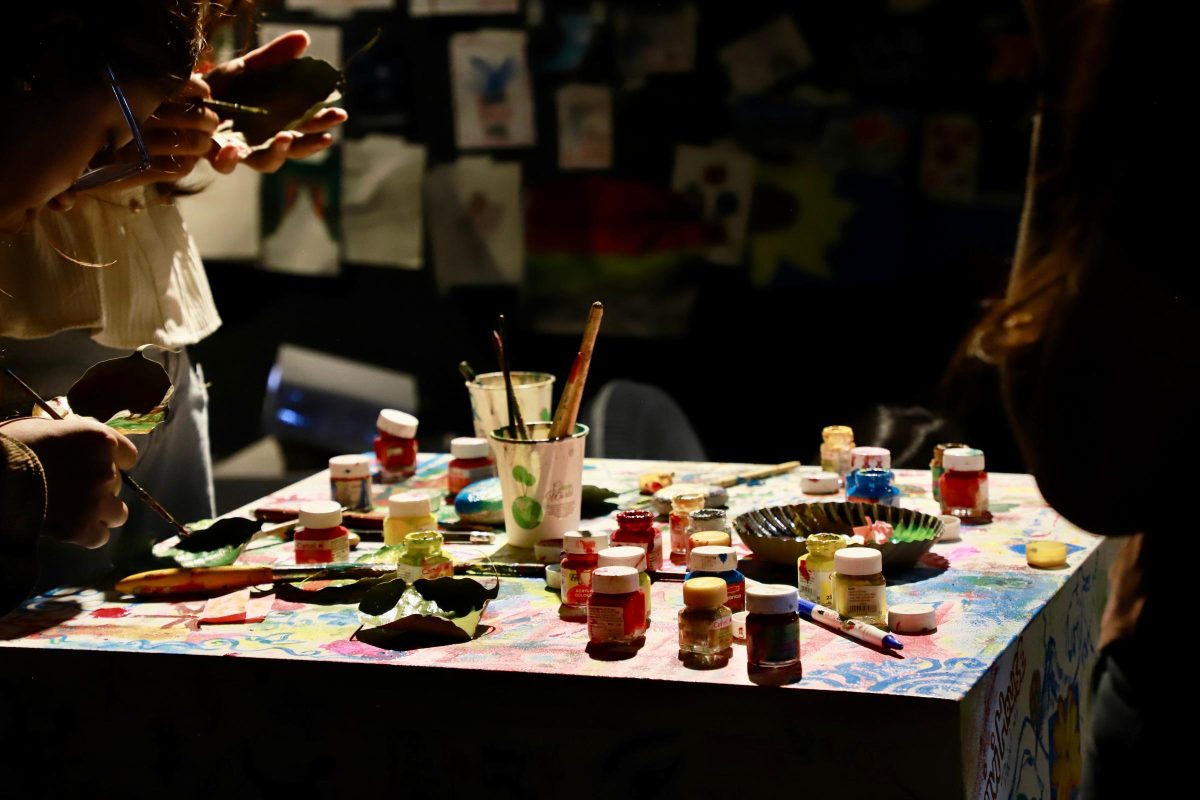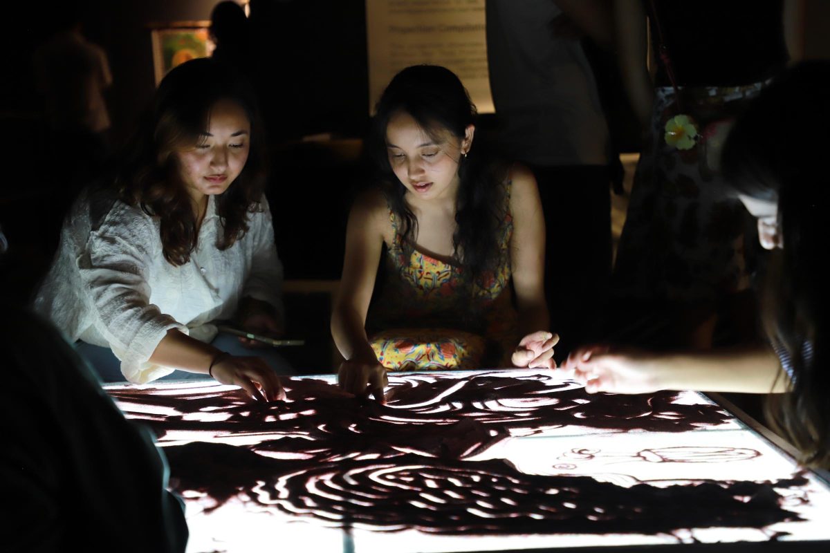 Likewise, a corner of the exhibition also comprises a section for audiences to freely color on stone, leaf, and paper. Many of them enjoyed filling in the colour and drawing.