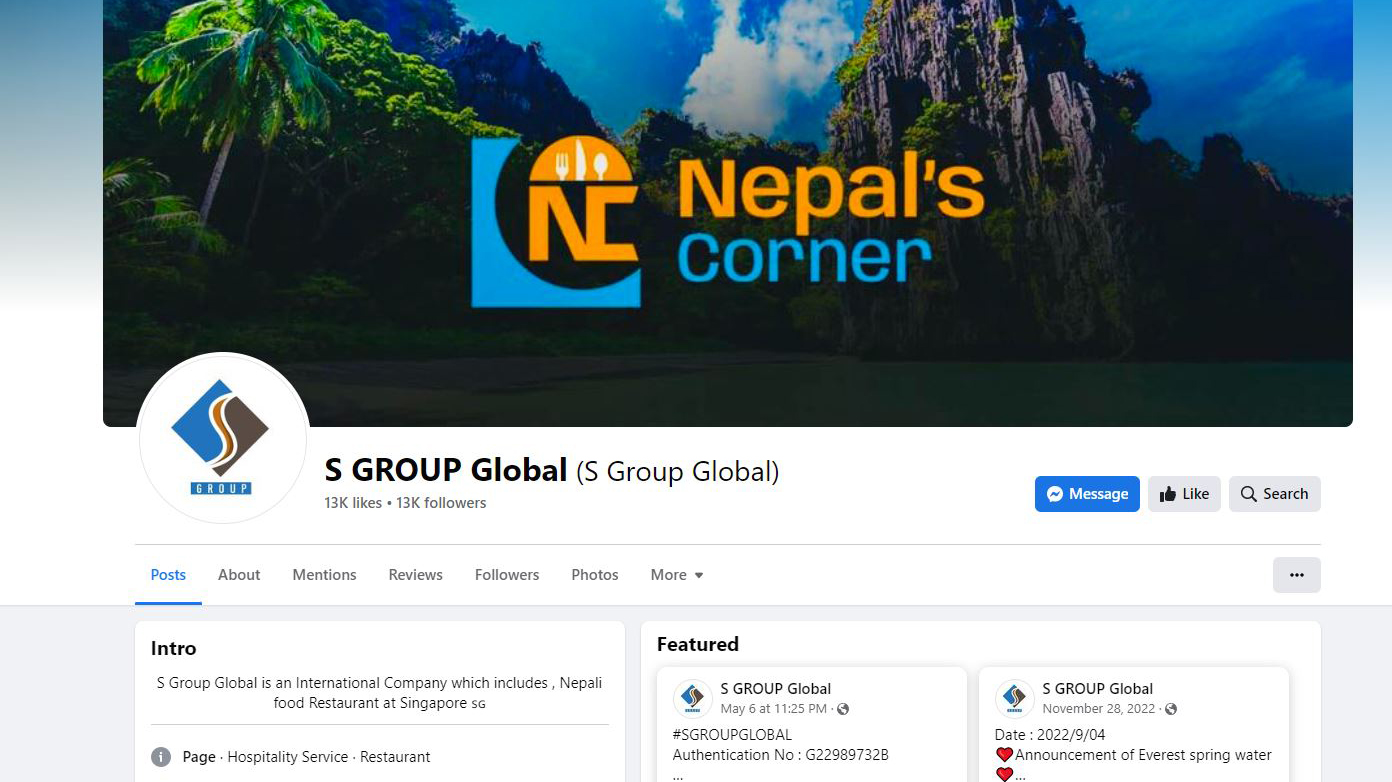 Facebook Page of Sujan's Fake Company 'S-Group Global'
