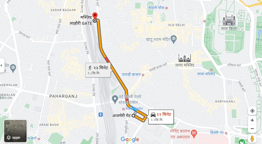 Direction for G.B. Road, from 'Ajmeri Gate' to 'Lahori Gate' ,on Google Map