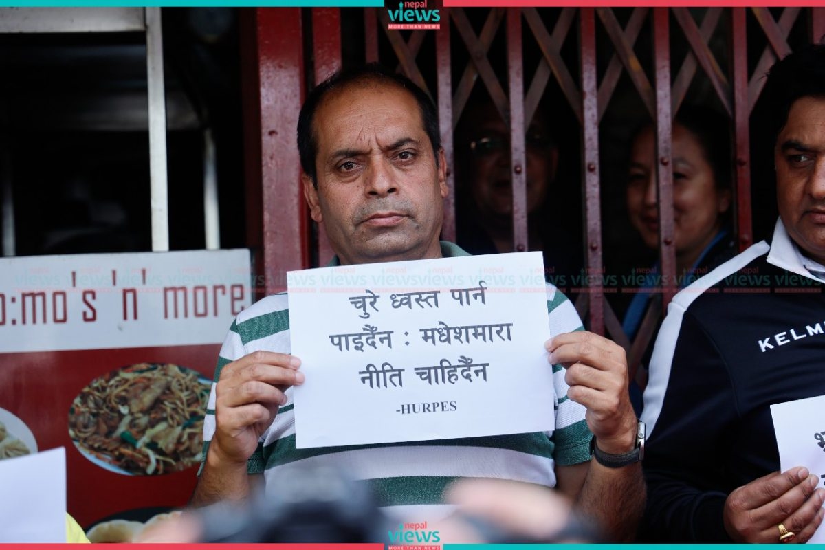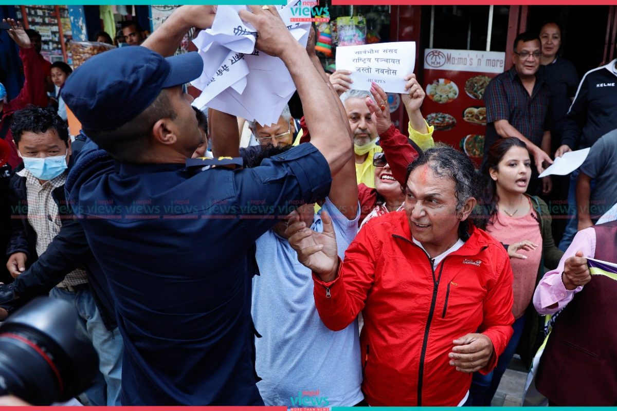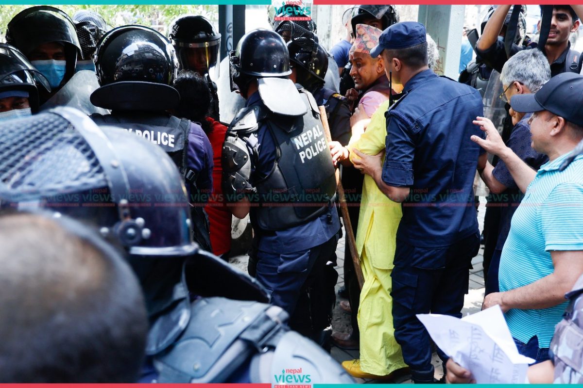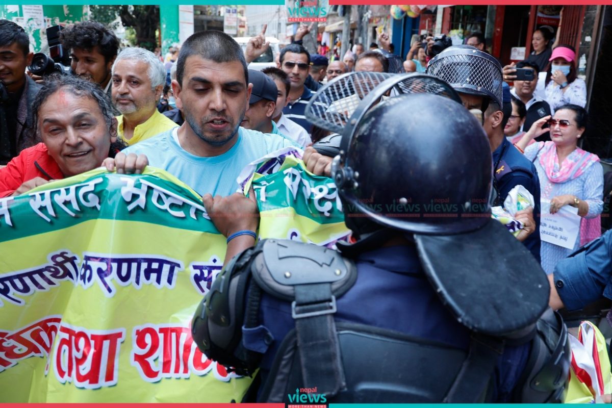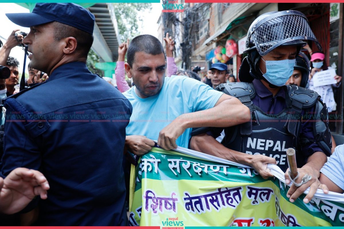 Police arrested the demonstrators from Gate No.3 (West Side) of the House, which is a restricted area for demonstrations. The demonstrators were demanding action against the ones involved in the corruption-related cases including the fake Bhutanese refugee scandal.