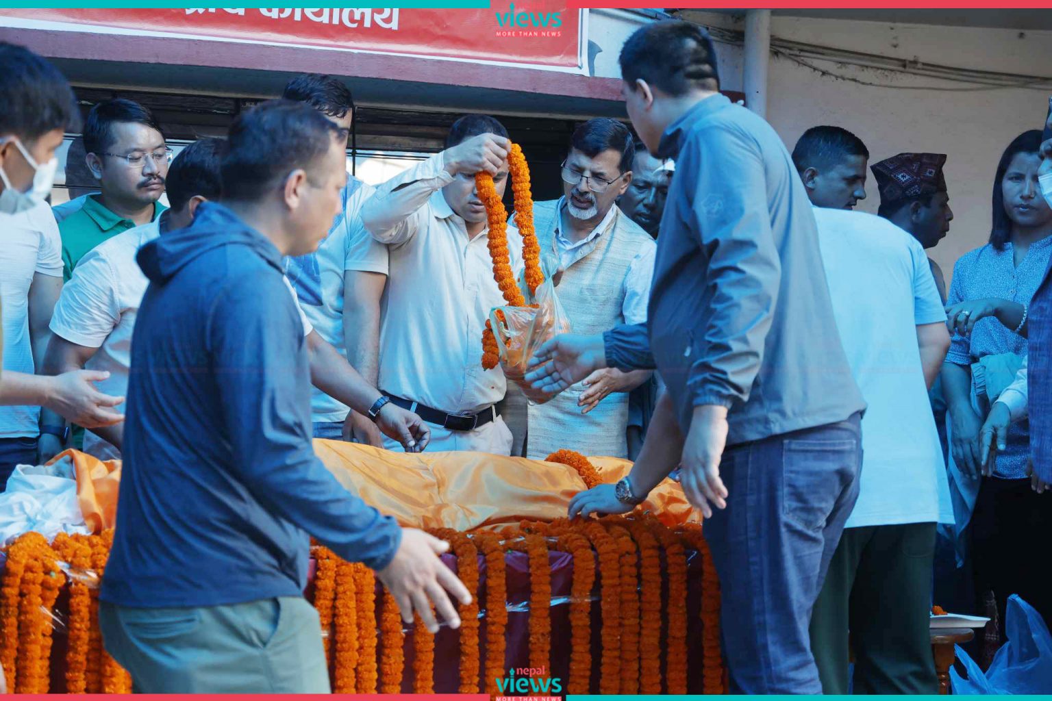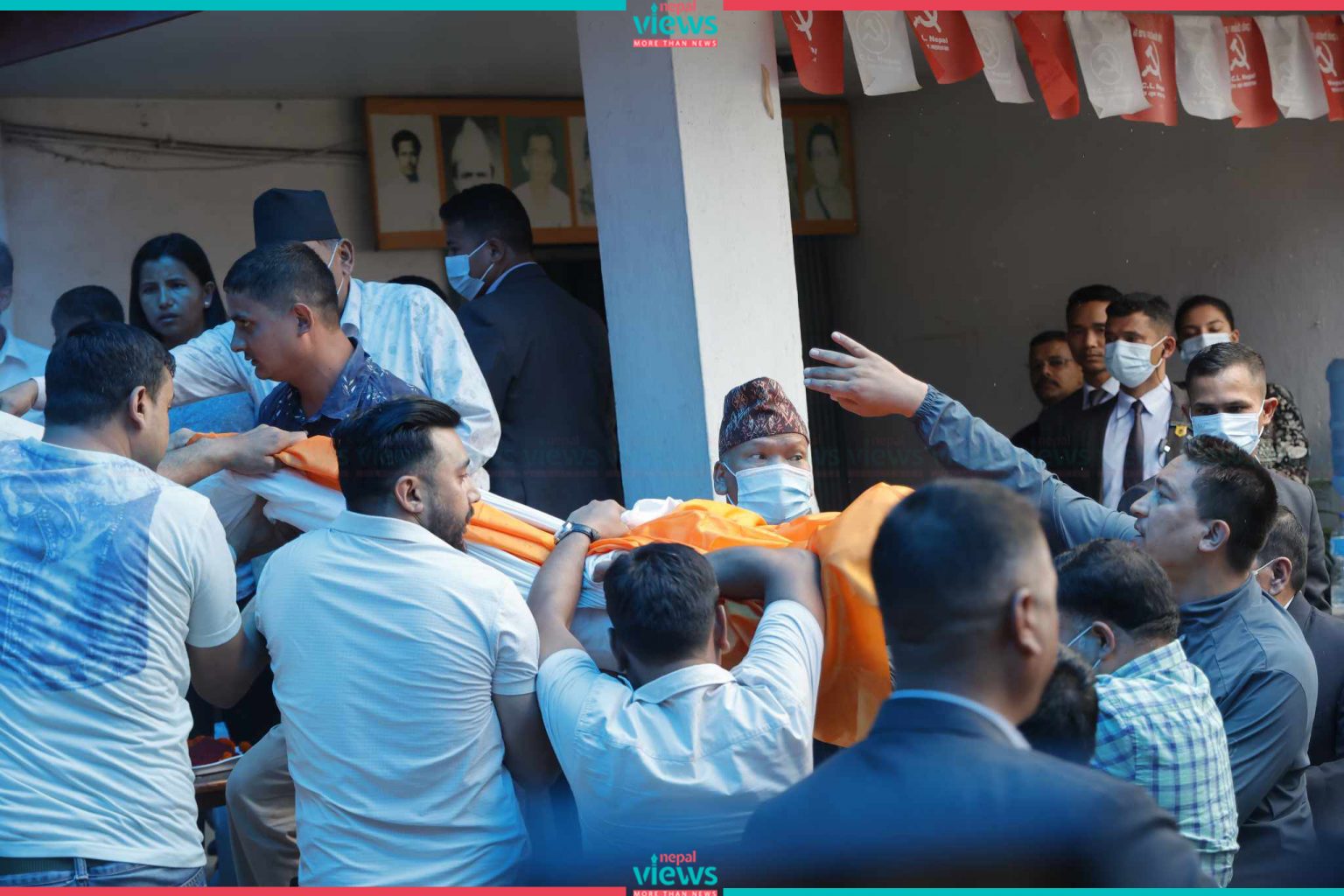 Kathmandu: Prime Minister Pushpa Dahal's wife Sita Dahal's body has been kept in CPN (Maoist)'s Party Office Paris Danda for a final public appearance.