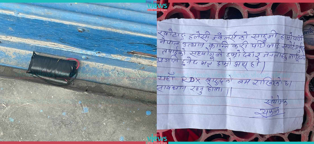 The chit stated-'Owner of Halesi Jewelers, Help our party Nepal Utthan Krantikari Party. We hope that your support would be a great support for our country and the public. An RDX bomb has been placed here. Beware! Coordinator-Safal.'